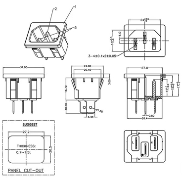 IEC Appliance Inlet/Outlet C14, Snap-in Mounting
